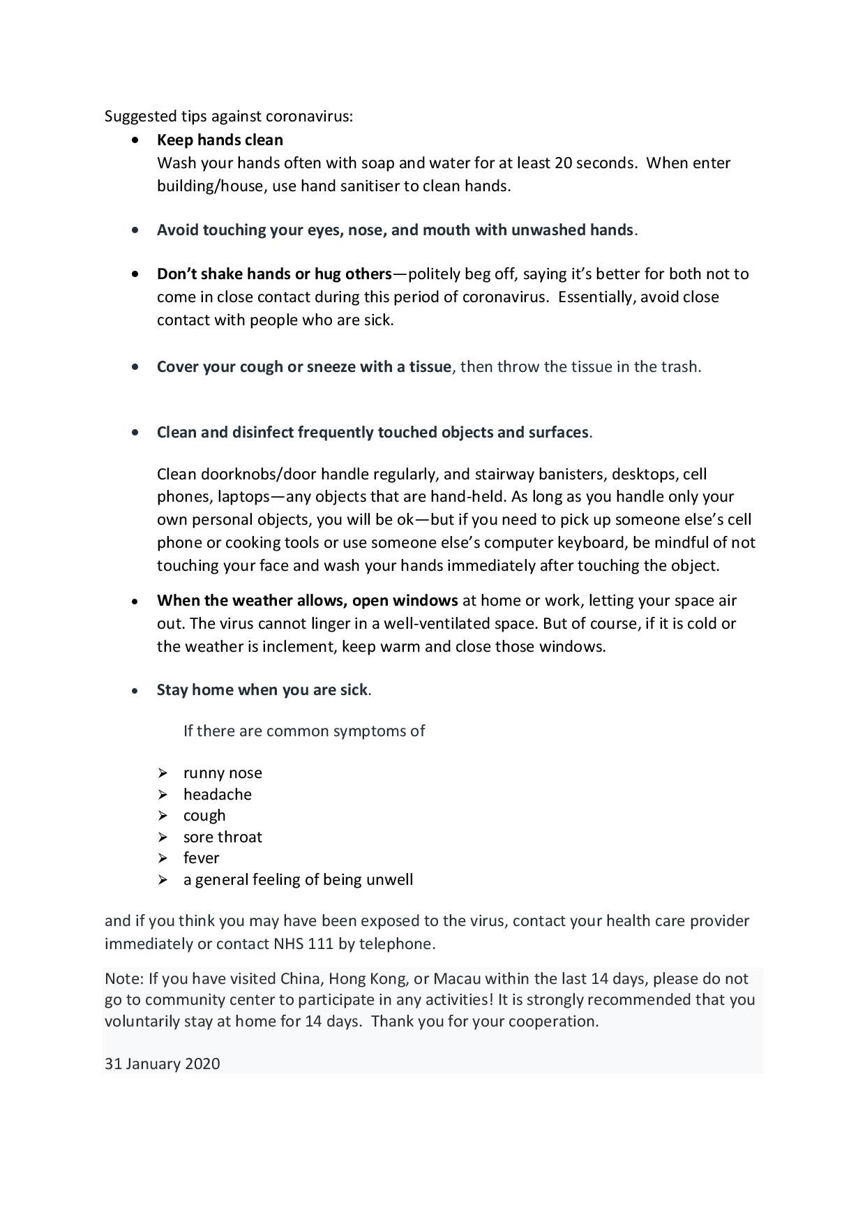 ICA – Cancellation of CNY celebration on 8 February 2020