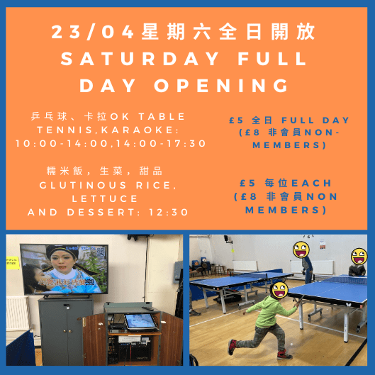 On the 23rd of April, a special lunch (£5 for members, £8 for non members) will be available prepared by Chef Ho Tse, consisting of Hong Kong special glutinous rice and sweet dessert!
