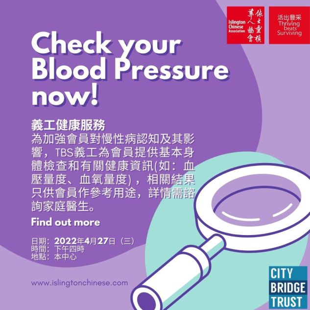 To enhance the self-awareness of health symptoms and impact of chronic illness, TBS volunteers would provide basic medical check-ups and related health information (e.g. blood pressure, blood oxygen level) to our members, and the measures only provide for personal reference and please consult GP in need