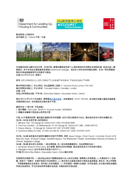 回程上車時間及地點 Returning Gathering Time & Place: 5pm, Oxford Bus Station, Gloucester Green, Oxford