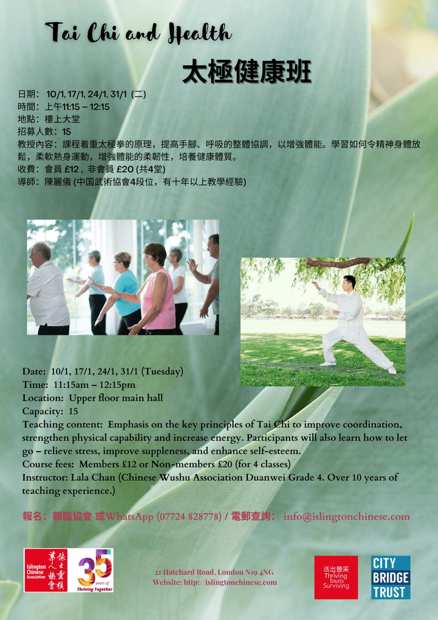 報名:親臨協會 或WhatsApp (07724 828778) /電郵查詢: info@islingtonchinese.com