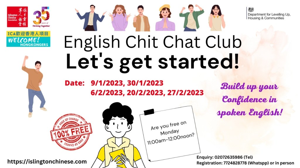 當您運用英語溝通時,您有甚麼感覺? 會害怕主動與人溝通嗎? 鼓勵您參加 ICA 的英語派對,增強自己運用英語的信心。費用全免,請Whatsapp 07724828778 或 親臨協會報名。如有任何問題,請致電 020 7263 5986 查詢。