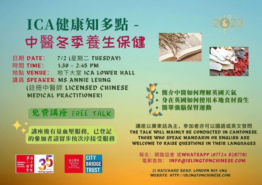 報名:親臨協會 或WhatsApp (07724 828778) /電郵查詢: info@islingtonchinese.com