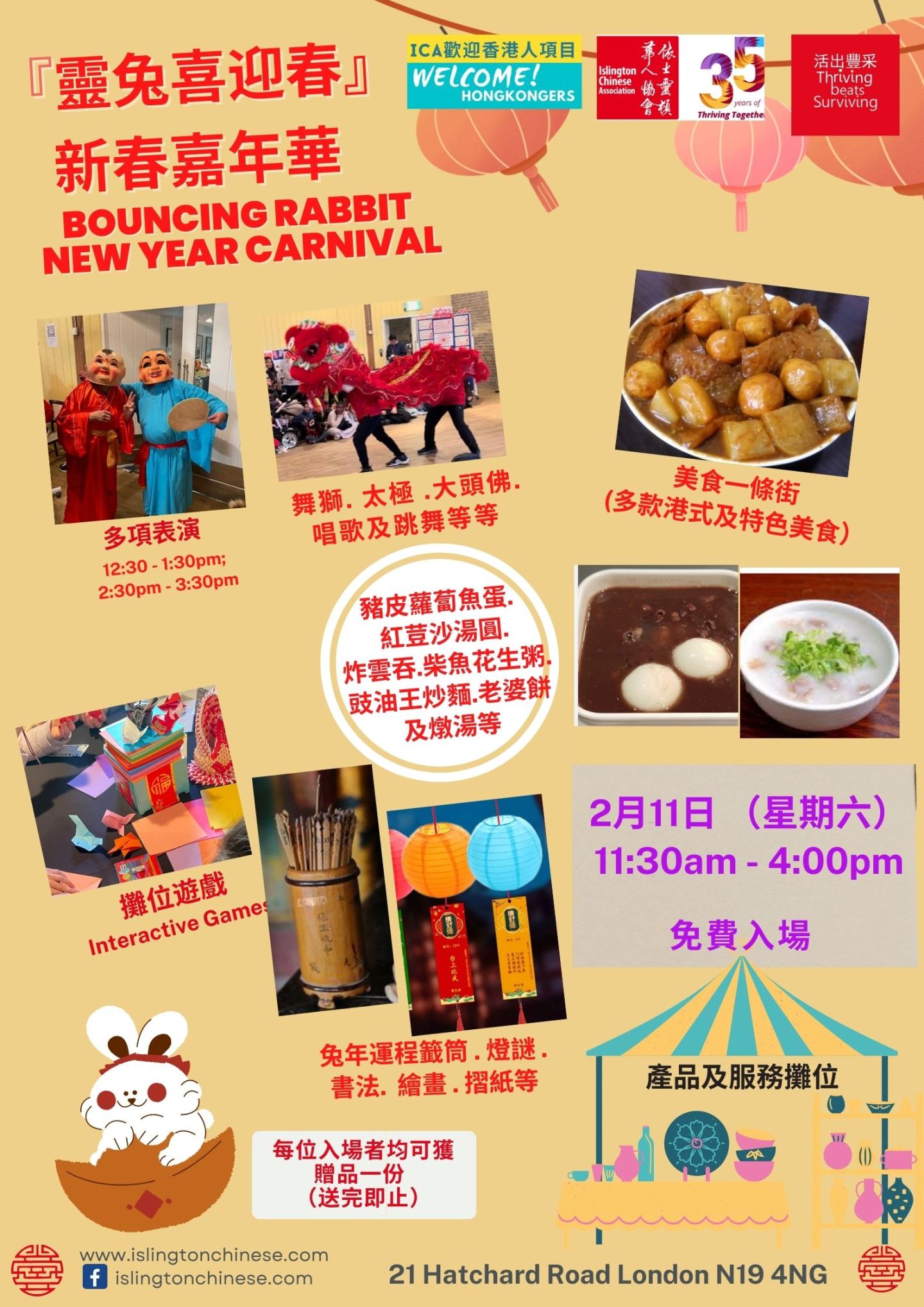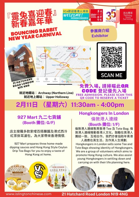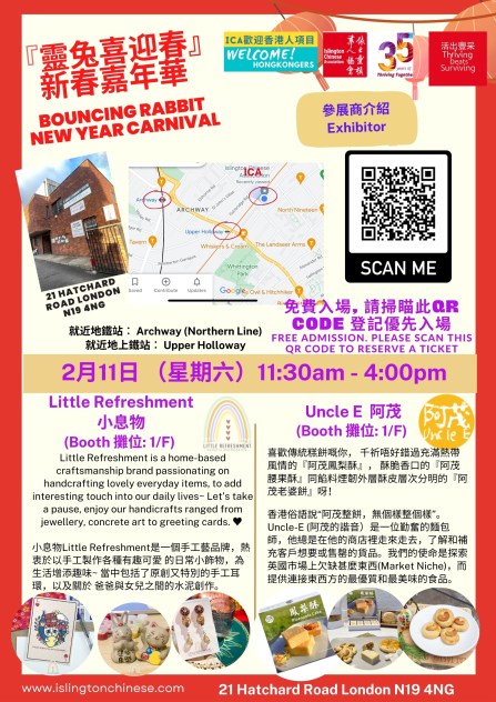 本星期六ICA舉辦『靈兔喜迎春』新春嘉年華,有多個集香港人特色的攤位呈獻多款精品、美食、手工藝品及服務,滙聚香港人的文化及才華!2月11 日見!