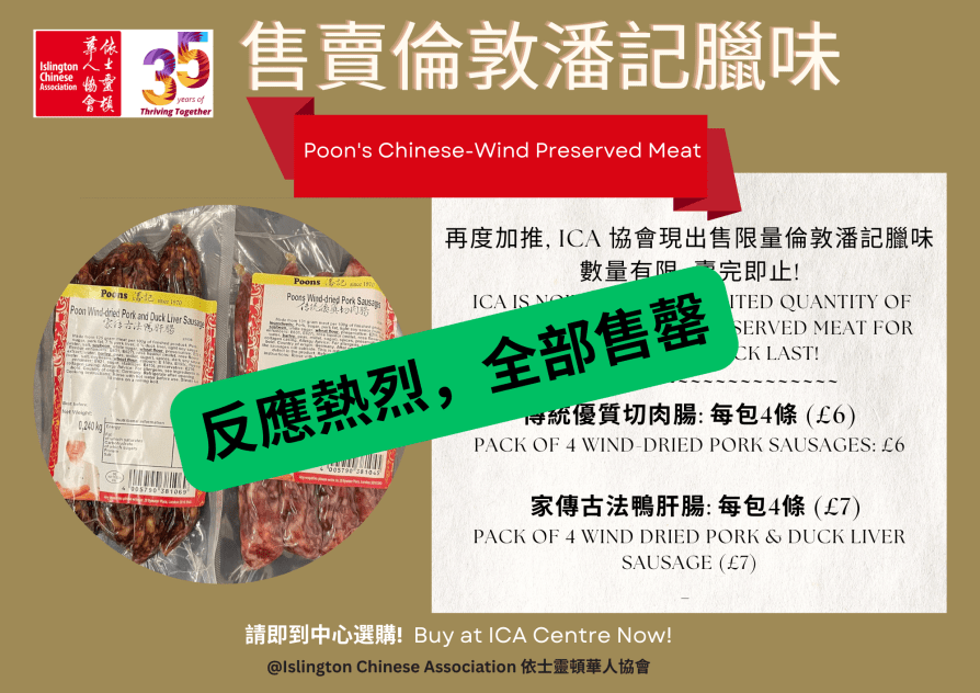 ICA 協會出售限量倫敦潘記臘味反應熱烈,現已全部售罄! All sausages are sold out!! Thank you all for the support!!