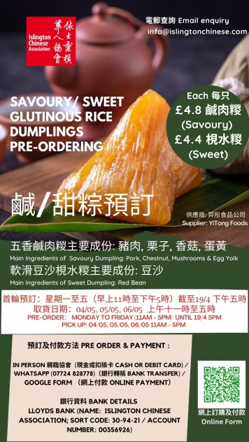 Hello! It’s time to have Rice Dumplings! We are collaborating with YiTong Foods and will be selling their delicious glutinous rice dumplings, both Savoury Dumplings and Sweet Dumplings.