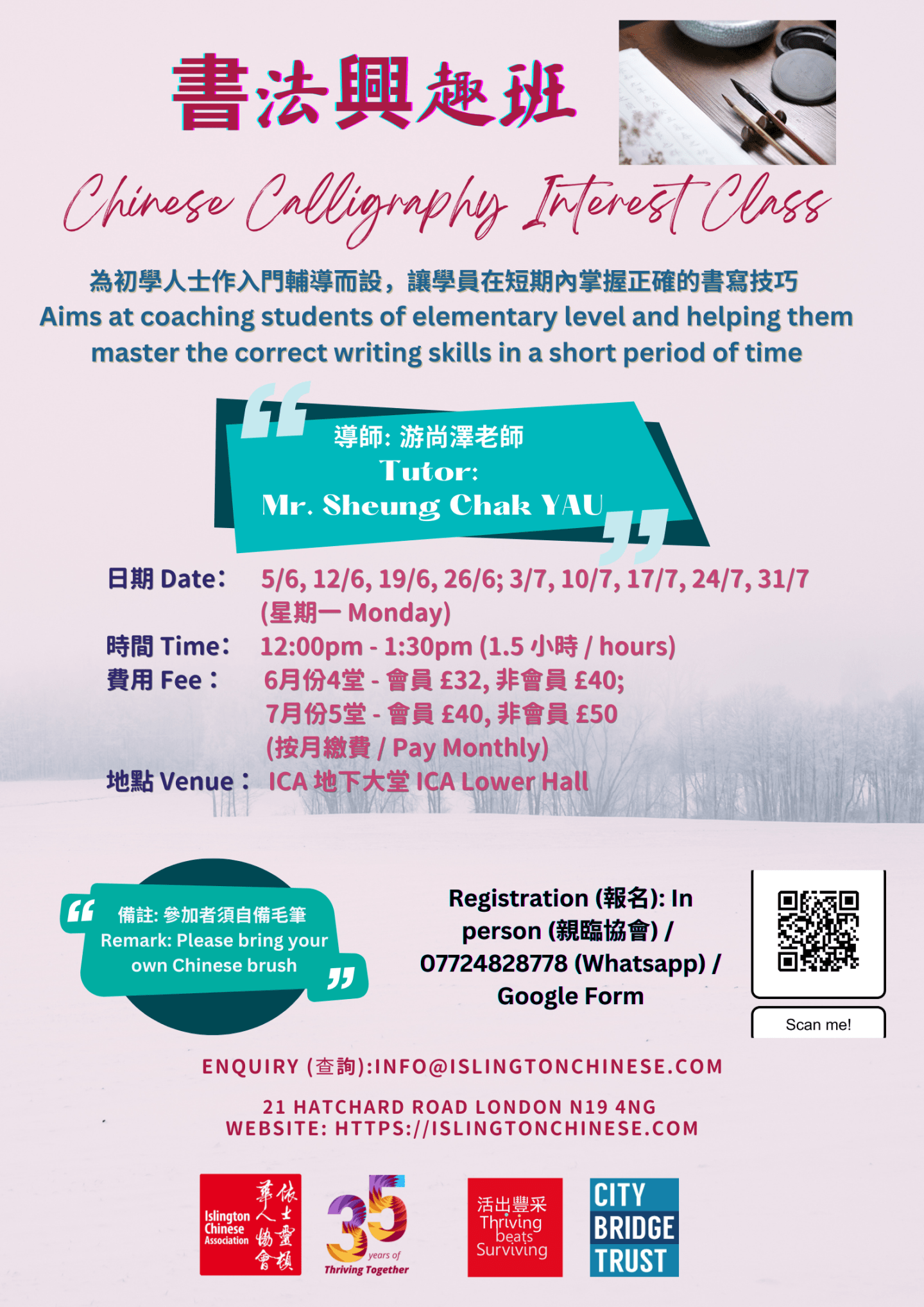 报名:亲临协会/ WhatsApp (07724 828778) / 填写 Google Form https://forms.gle/3q5P2PqeGjpGjur98