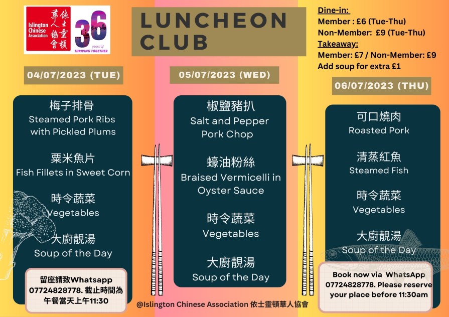 下星期又有新菜式啦!當天上午11:30前記得 WhatsApp 07724 828778 留位啦! The latest Lunch Menu is ready! Remember to WhatsApp 07724 828778 and reserve your seat before 11:30 am on the day.