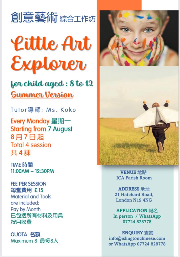 ICA plans to organize a four-session creative art comprehensive workshop named “Little Art Explorer – Summer Version” for children aged 8-12 in August. The sessions have been carefully arranged to cultivate children’s various abilities, including observation, thinking, creation, criticism, communication, etc.