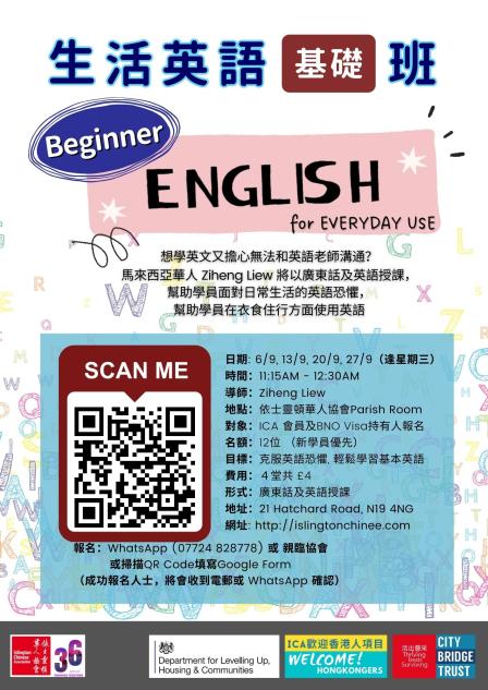 報名:WhatsApp (07724 828778) 或 親臨協會 或填寫以下Google Form