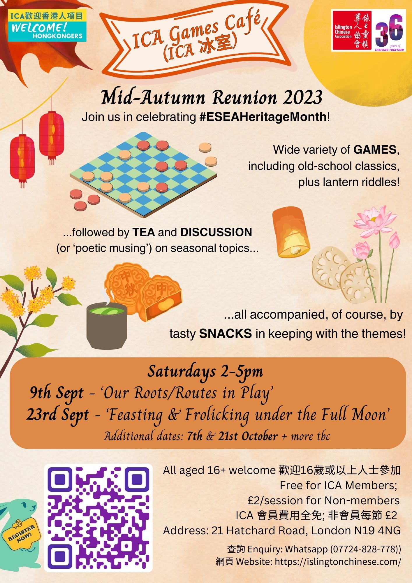地址: 依士靈頓華人協會 地下大廳 (21 Hatchard Road, London N19 4NG)
