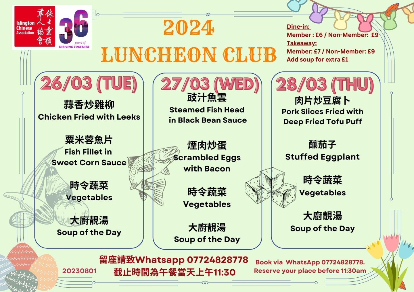 下星期菜單準備好了!當天上午11:30前記得 WhatsApp 07724 828778 留位啦! The latest Lunch Menu is ready! Remember to WhatsApp 07724 828778 and reserve your seat before 11:30 am on the day.