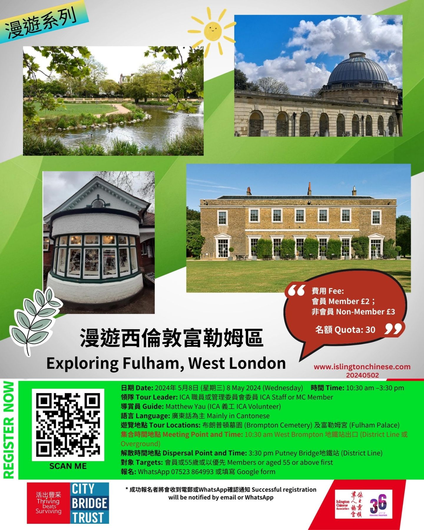 集合時間地點 Meeting Point and Time: 10:30 am West Brompton 地鐵站出口 (District Line 或 Overground)