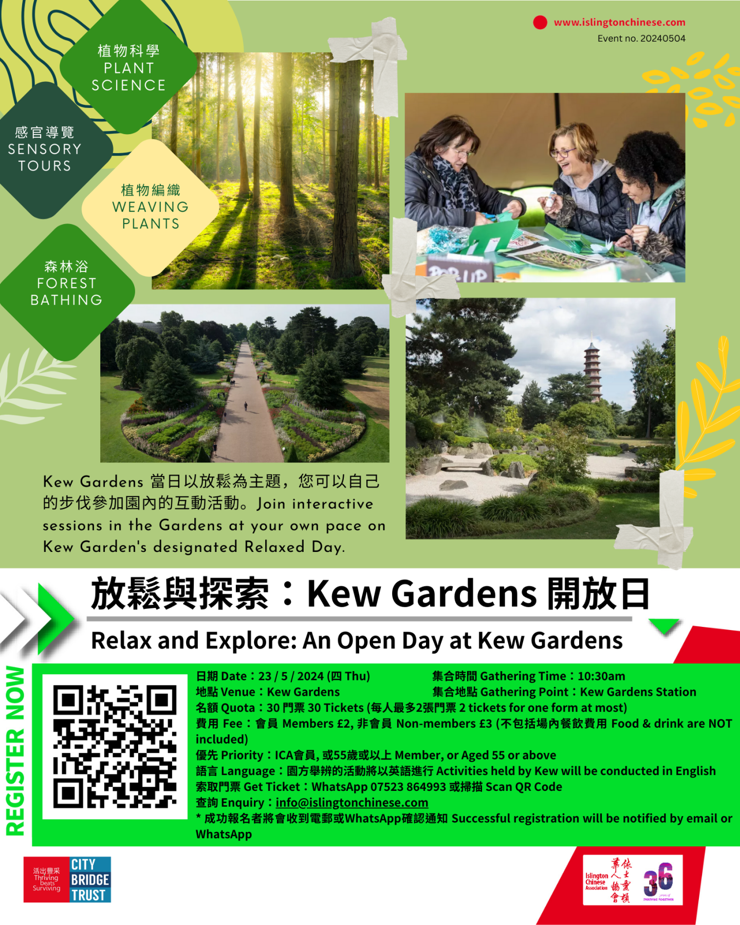 語言 Language:園方舉辨的活動將以英語進行 Activities held by Kew will be conducted in English