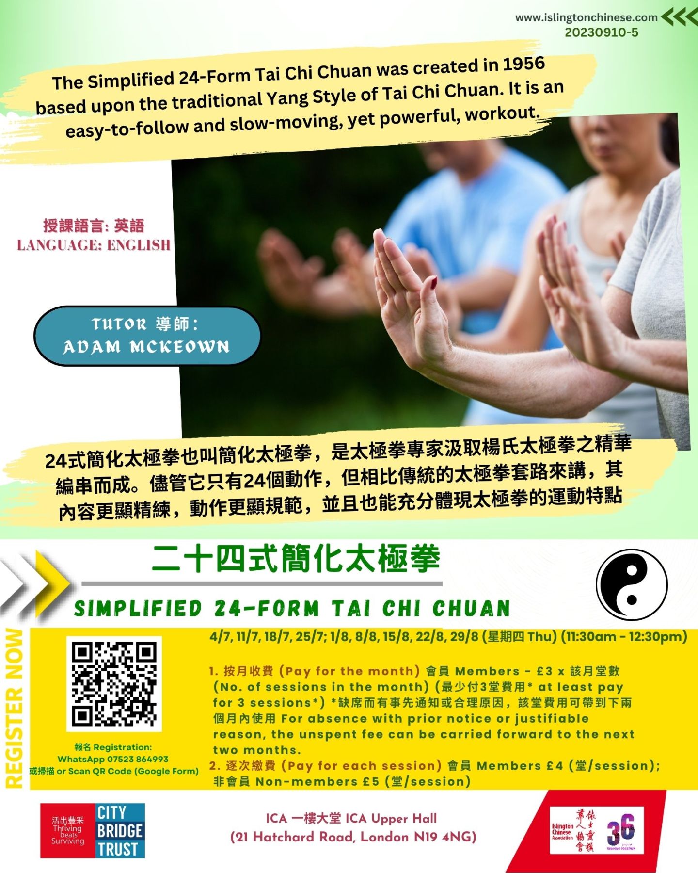 報名 Registration: WhatsApp (07523 864993) 或 填寫 Google Form https://forms.gle/FT5KmePJHyNqPLaF8 (報名而獲接納者,將會收到電郵或WhatsApp確認)。 WhatsApp (07523 864993) or fill in this Google Form https://forms.gle/FT5KmePJHyNqPLaF8 (Those who are accepted will be notified separately by email or WhatsApp)