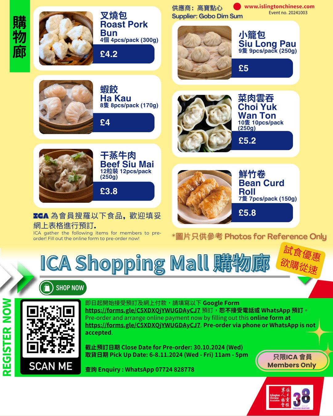 ICA offers 6 types of dim sum from Gobo for members to order at a special trial price. Welcome members to place order and arrange payment online at this link before 30/10 Thur. Pick up from 6/11 – 8/11. This is the online order form https://forms.gle/C5XDXQjYWUGDAyCJ7