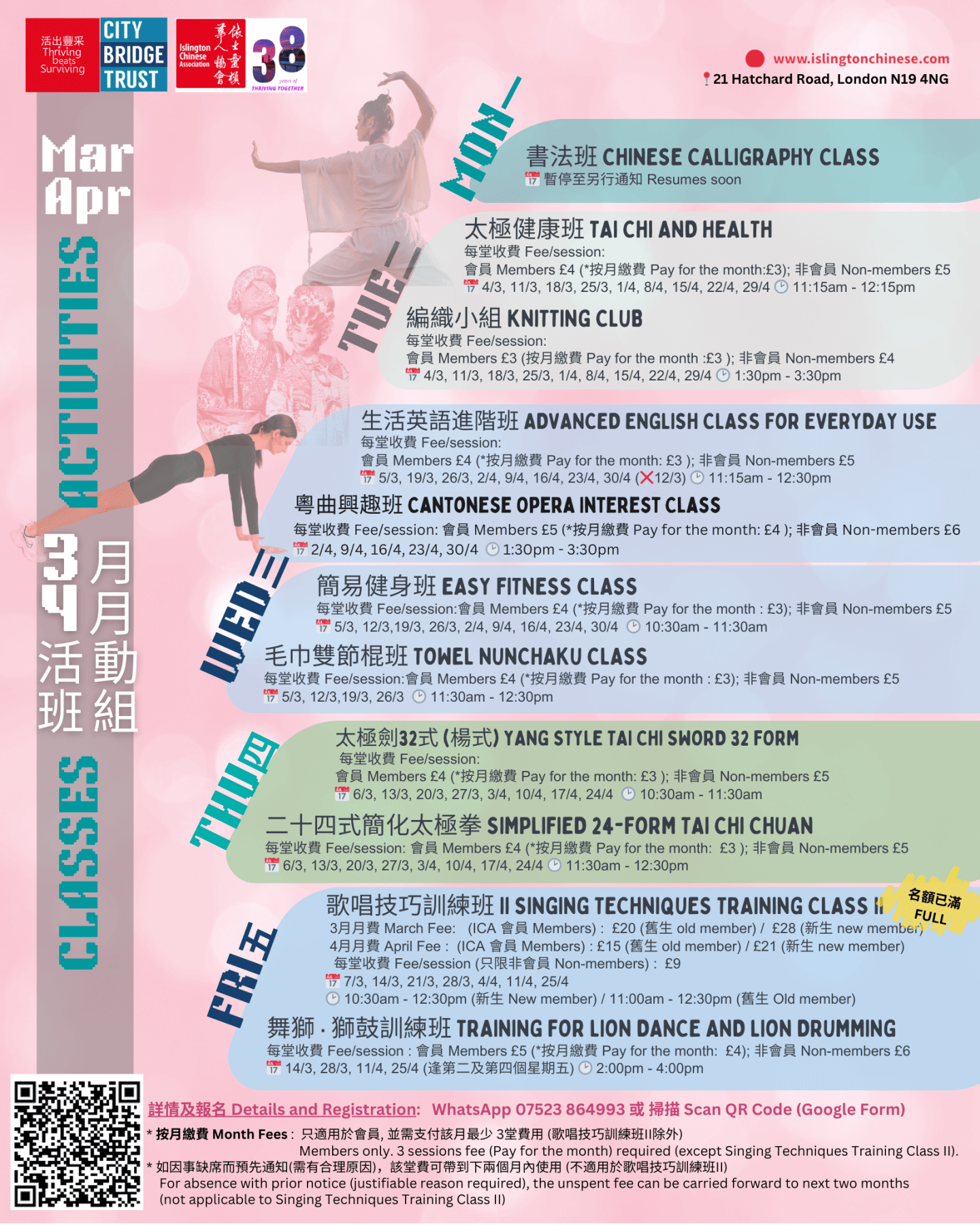 3月 – 4月份班組 Classes/Activities in Mar-Apr