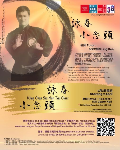 小念頭是詠春拳的初級拳套,有「念頭正,終生正之意」。整套共計108個動作,故又名「一百零八點手」。念頭雖小寓意深,道法自然意隨心,立身處地守中正,覺悟修身佛性生。Siu Nim Tau is the fundamental form of Wing Chun, symbolizing the idea that if one’s thoughts are correct, one’s entire life will be righteous. Siu Nim Tau composes 108 movements. It follows the natural flow of Dao and enlightens the state of mind.