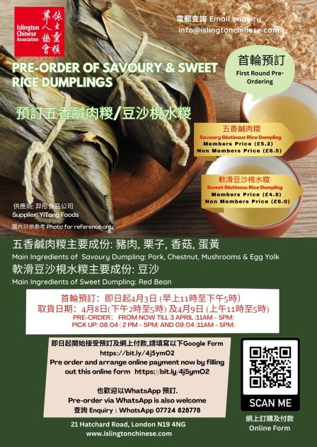 今年端午節在5月31 日, 又係時候開始訂粽啦! 一如往年,我們和羿彤食品公司合作售賣咸肉粽及甜粽(俗稱梘水粽), 首輪預訂由即日起至3/4 下午五時. 取貨日期為8/4 (下午2時至5時) 及9/4 (上午11時至下午5時), 訂購時請選擇取貨日期. 訂購時須同時付款.