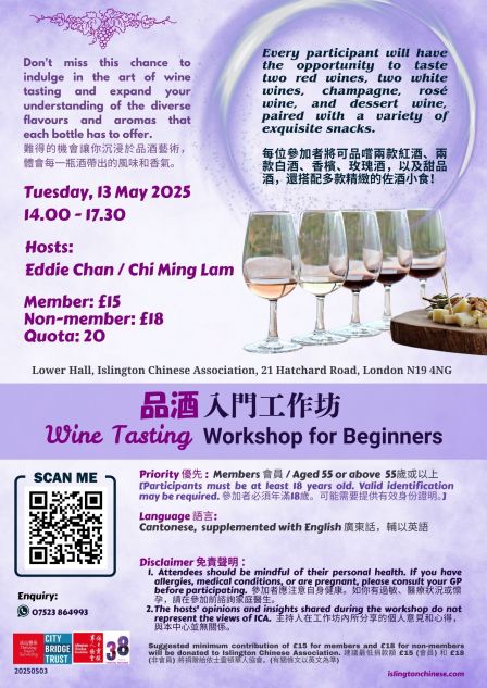 費用 Fee: 會員 Member : £15; 非會員 Non-member : £18 [確認報名後網上繳費。Online payment upon confirmation.]