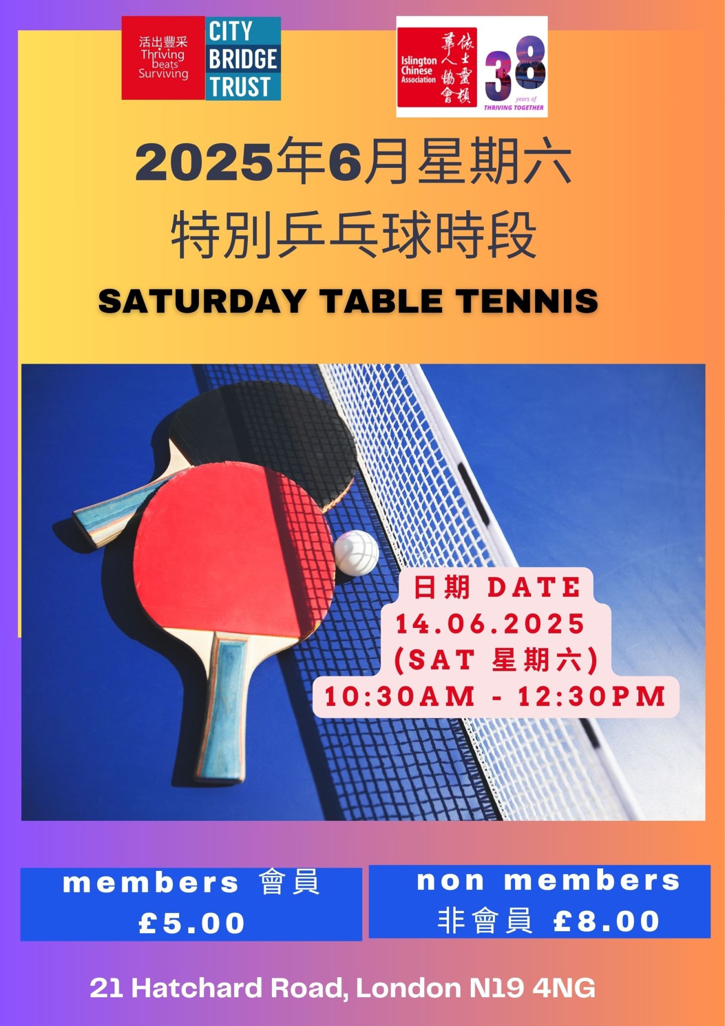 6月14日星期六ICA 安排週六特別乒乓球時段, 早上10時半至中午12時半, 到時見.