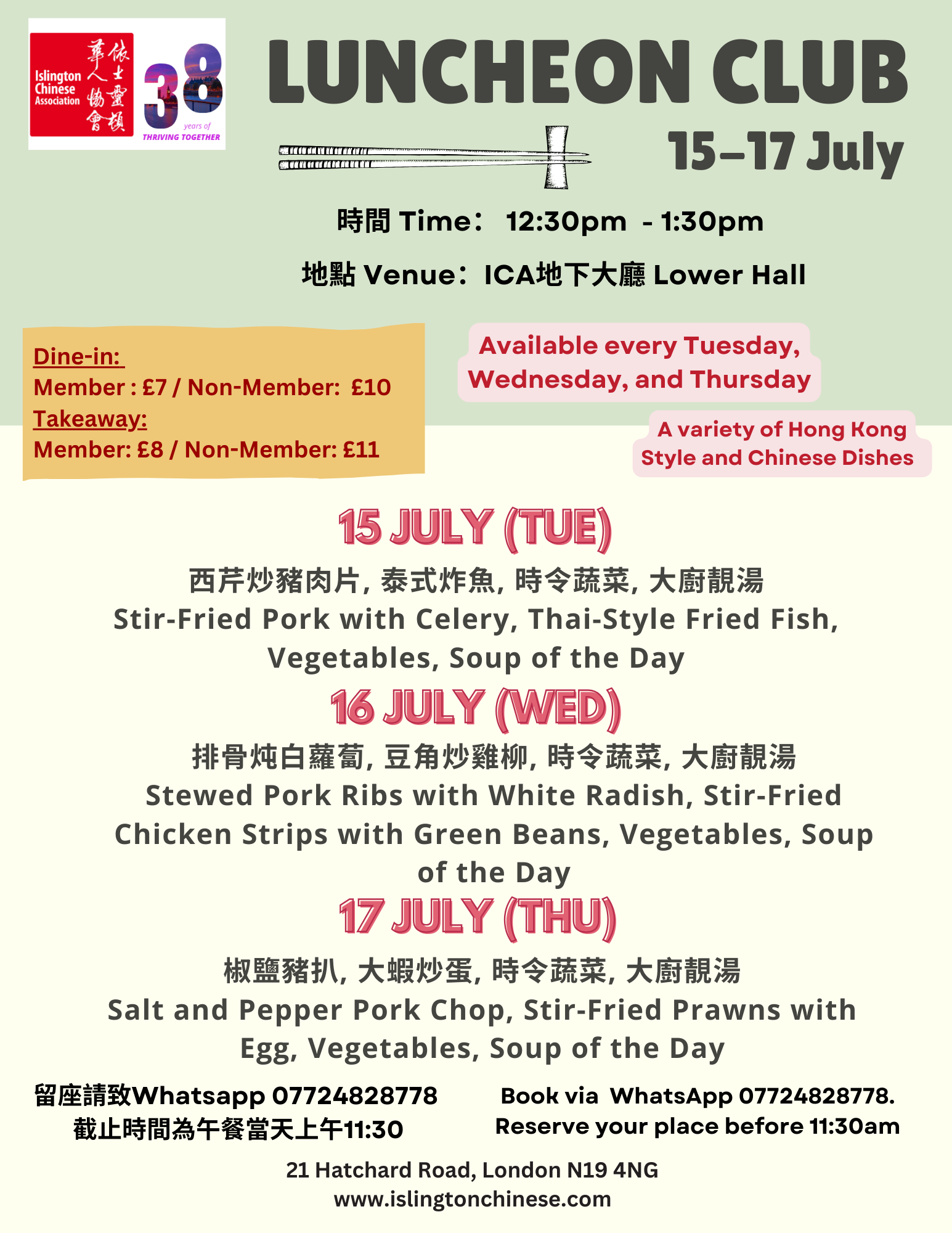 記得於 當天上午11:30前 WhatsApp 07724 828778 預留位置 😋😋😋