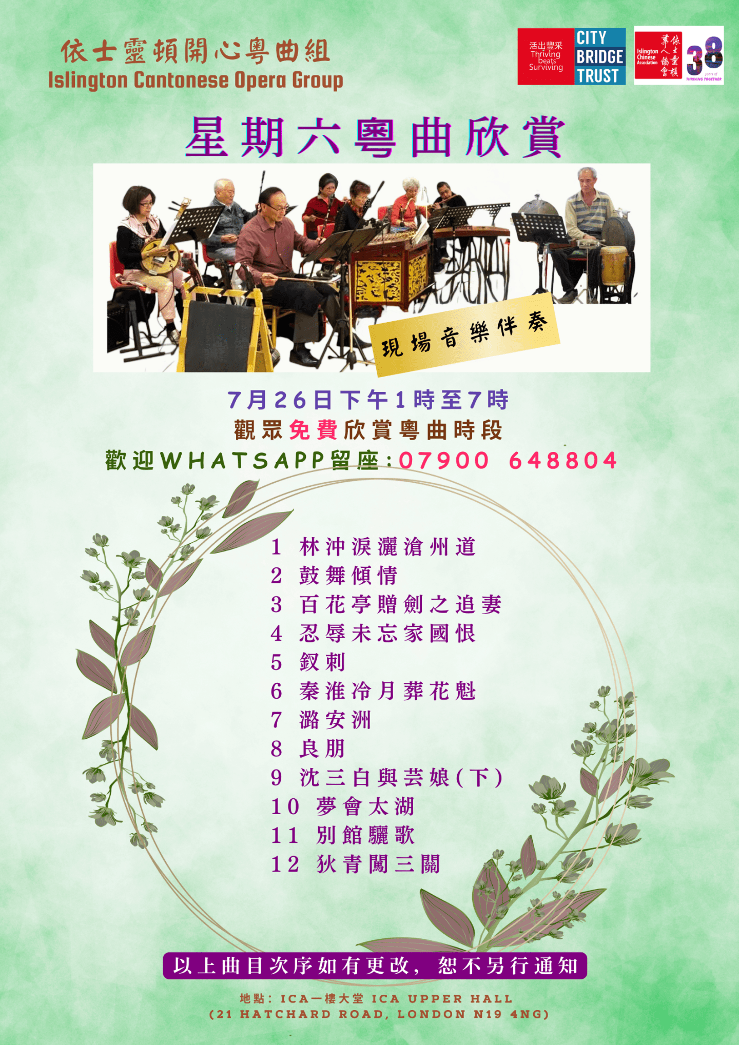 Islington Happy Cantonese Opera Group warmly invites all Cantonese opera lovers to join us for this special event.