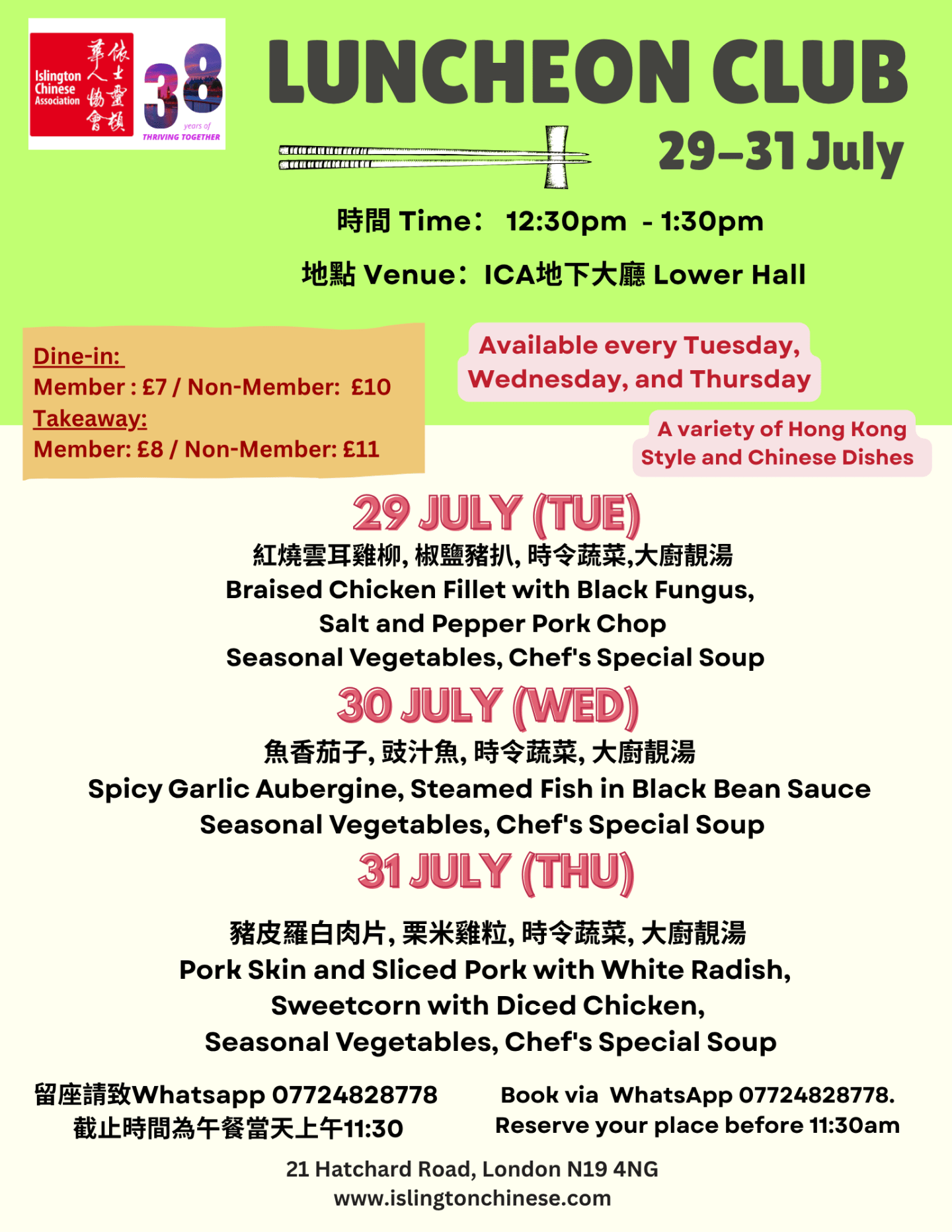記得於 當天上午11:30前 WhatsApp 07724 828778 預留位置 😋😋😋