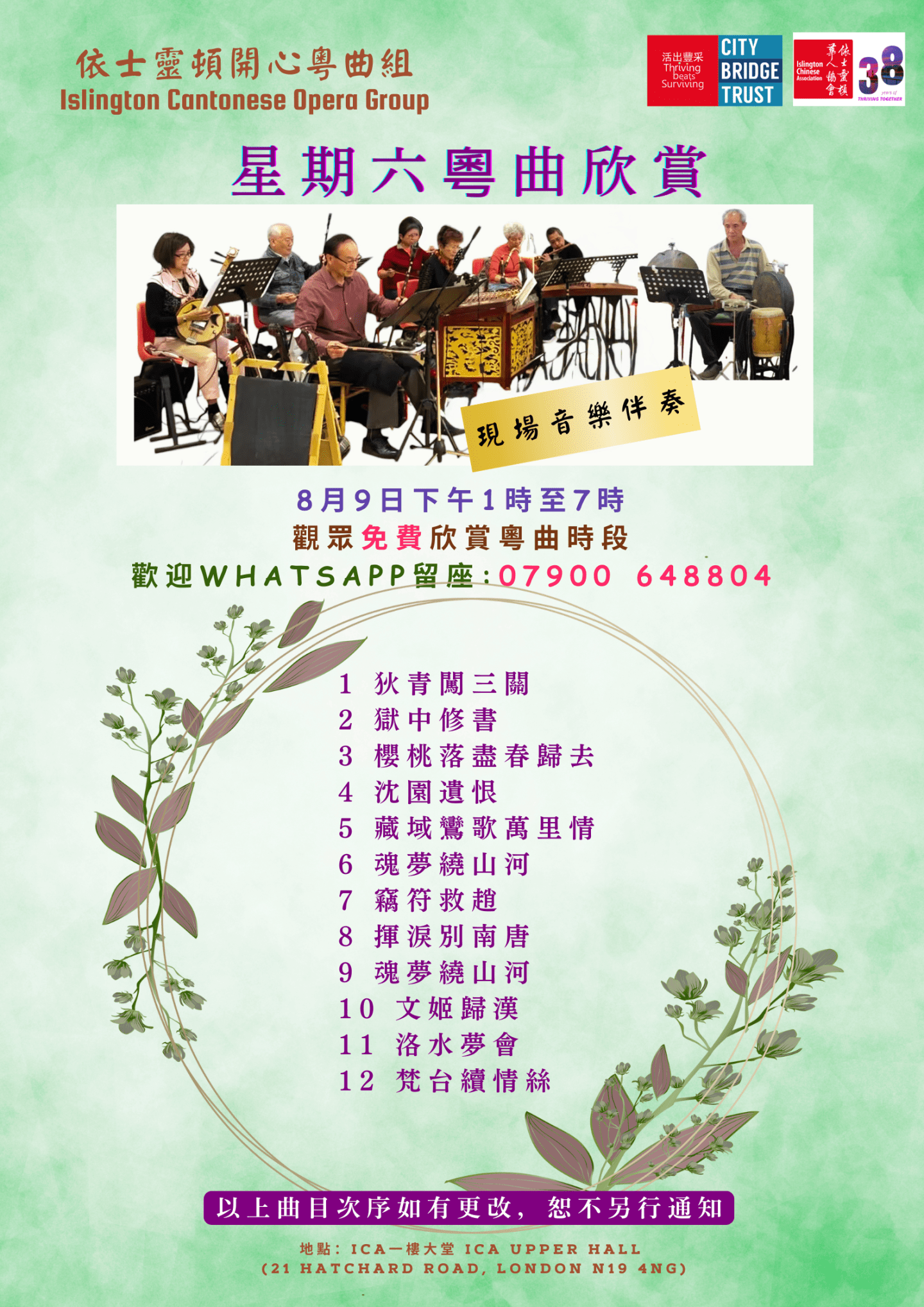 Islington Happy Cantonese Opera Group warmly invites all Cantonese opera lovers to join us for this special event.