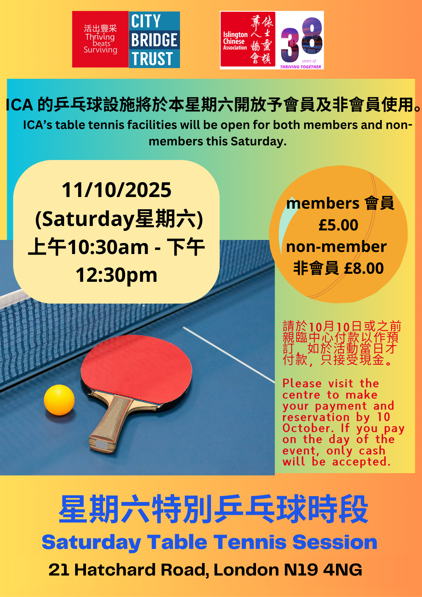 星期六特別乒乓球時段