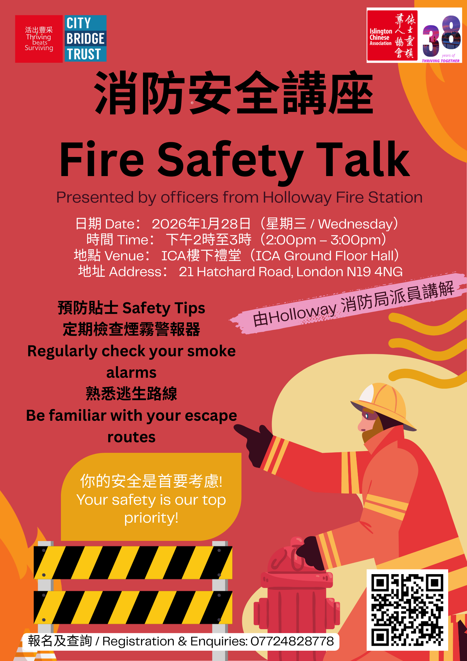 To enhance members’ awareness of home fire safety and emergency response, ICA is pleased to welcome the Holloway Fire Station team to deliver a practical and informative fire safety session led by professional firefighters.