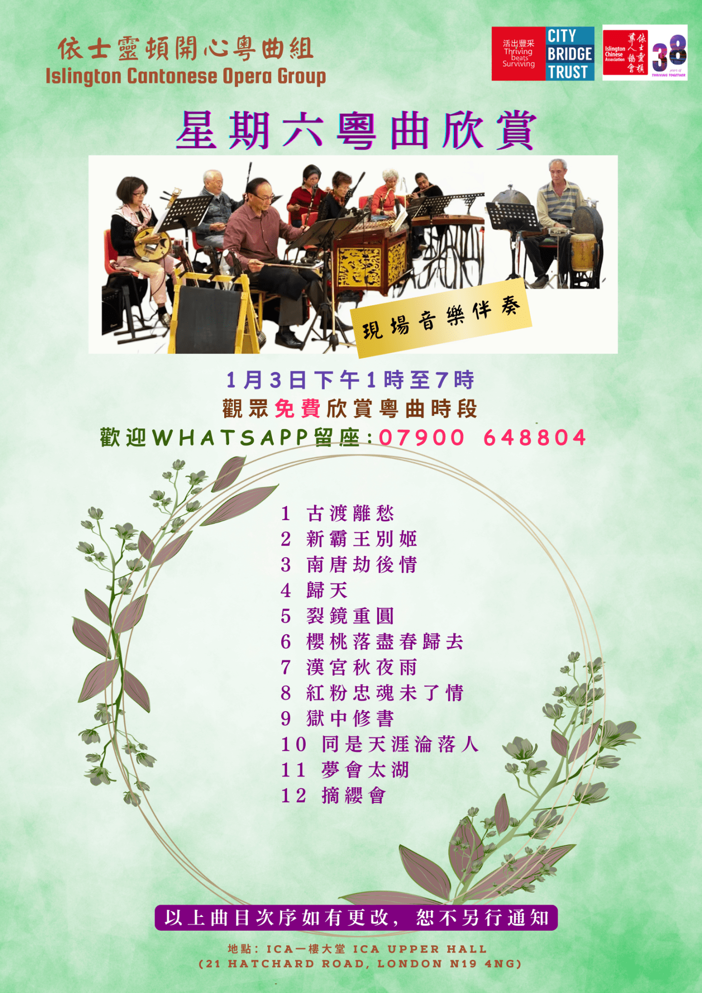 Islington Happy Cantonese Opera Group warmly invites all Cantonese opera lovers to join us for this special event.