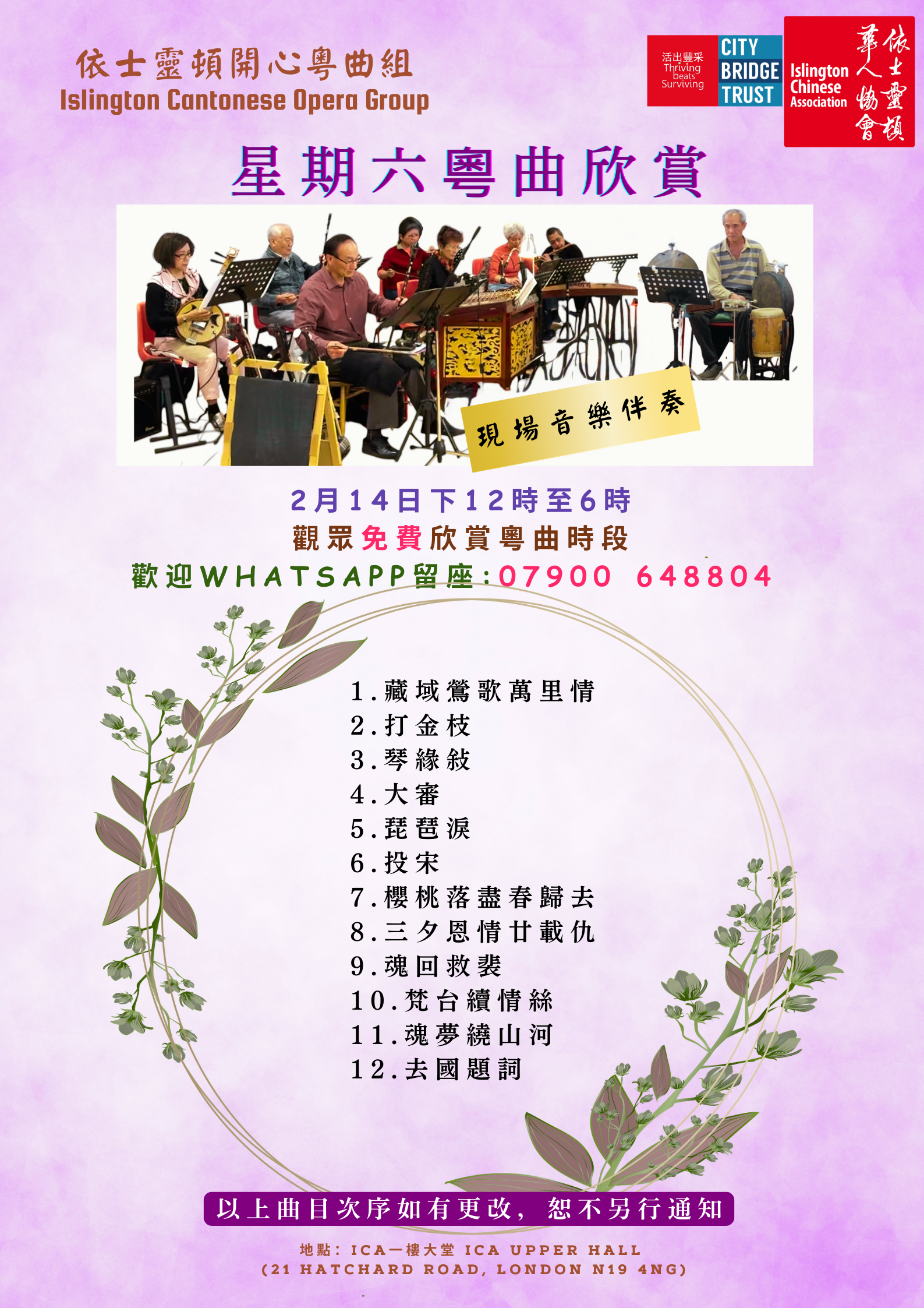 Islington Happy Cantonese Opera Group warmly invites all Cantonese opera lovers to join us for this special event.