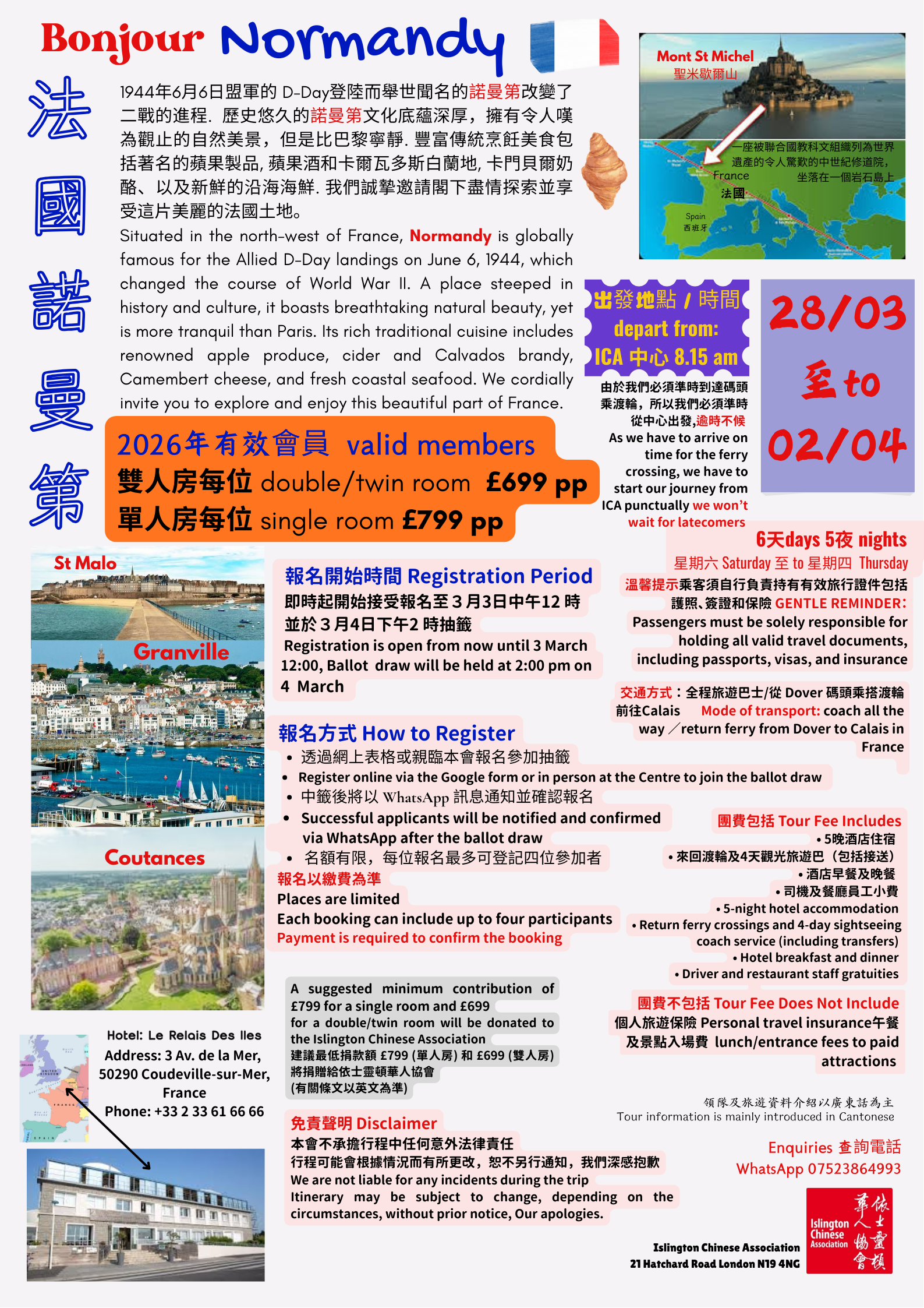 本會誠摯邀請會員一同前往探索這片歷史與文化交織的土地,親身感受法國西北部的迷人風情。