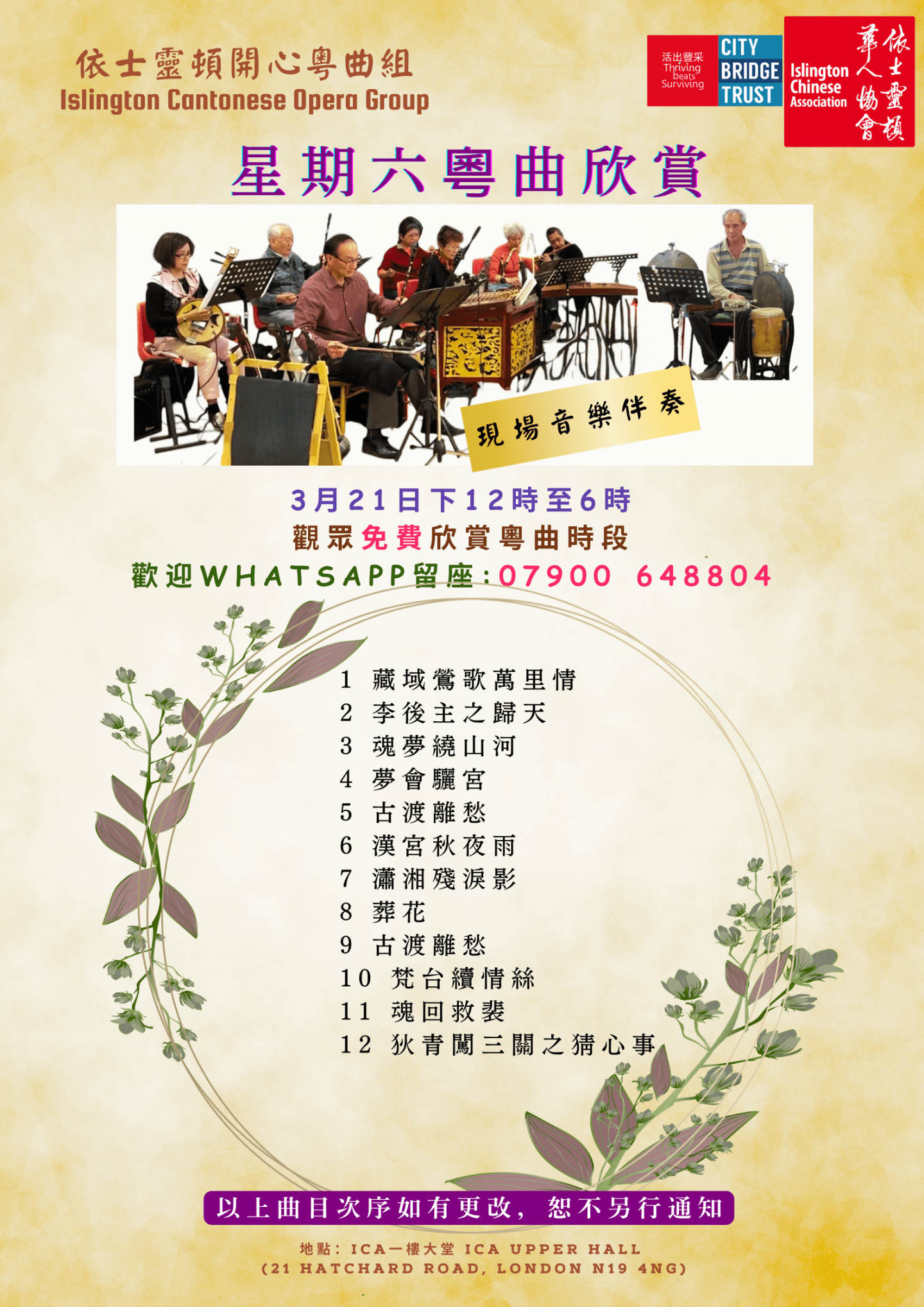 Islington Happy Cantonese Opera Group warmly invites all Cantonese opera lovers to join us for this special event.