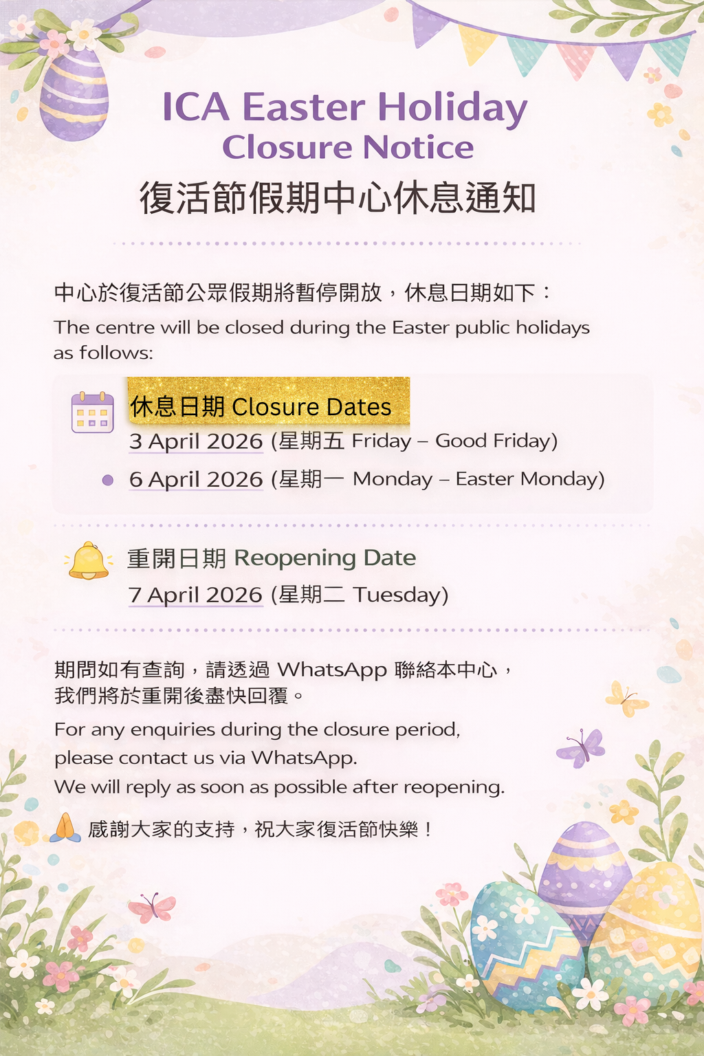 ICA Easter Holiday Closure Notice 復活節假期中心休息通知