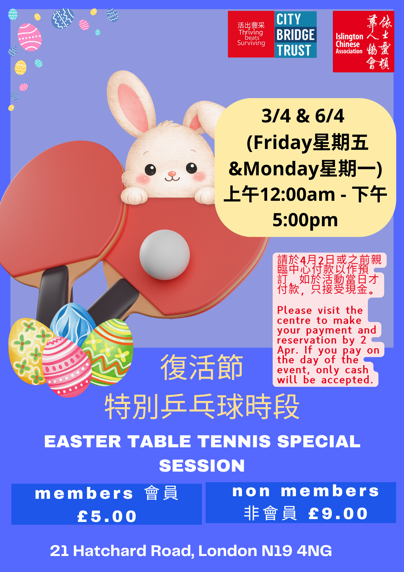 復活節限定 🐣🏓 乒乓球特別時段
