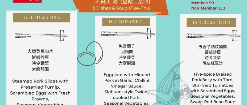 ICA LUNCHEON CLUB 2026 逢星期二、星期三及星期四供應Available every Tuesday, Wednesday & Thursday 📅 下週午餐菜單 Lunch Menu 記得於 當天上午11:30前 WhatsApp 07724 828778 預留位置 😋😋😋Please WhatsApp 07724 828778 before 11:30 am on the day to reserve your seat 😋😋😋 📌 星期二 (14/4) 大頭菜蒸肉片鮮蝦炒蛋時令蔬菜大廚靚湯 Steamed Pork Slices with Preserved TurnipScrambled Eggs with Fresh PrawnsSeasonal VegetablesChef’s Soup of the Day 📌…