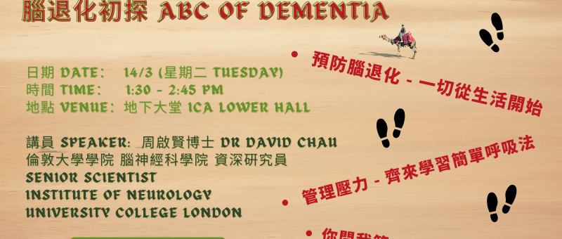 ICA健康知多點 – 腦退化初探 (免費講座 – 會員優先) ICA Health Series – ABC of Dementia (Free Talk – ICA Members First)