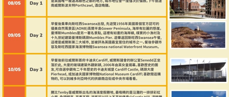 5日4夜 暢遊布里斯托, 卡迪夫, 斯旺西, 騰比, 巴斯 Visit Bristol, Cardiff, Swansea, Tenby, Bath 報名時間:2023年3月21日(星期二)上午11:00起接受報名 Registration starts from 21 March at 11:00am.