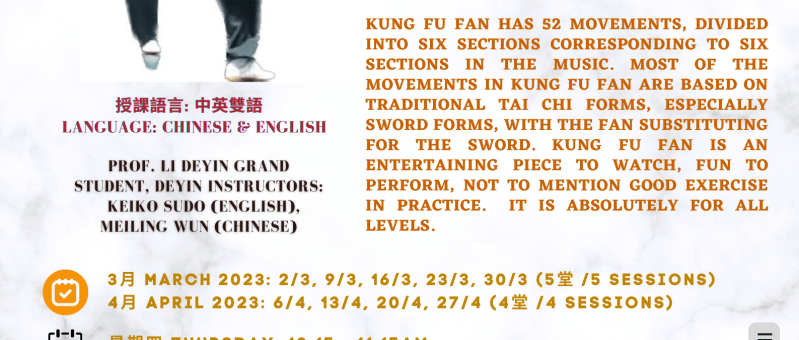 太極功夫扇班 Tai Chi Kung Fu Fan Class (March 2023)