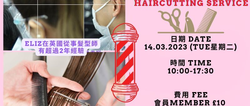 3月份剪髮服務又來啦! 來自香港的髮型師 Eliz 於3月14日(星期二)在中心為會員剪髮,Eliz在香港和英國從事髮型師工作2年多。當天剪髮服務由早上10時至下午5時30分,名額15個,會員£10,非會員£17。 請Whatsapp 07724828778 預約 ,先到先得,額滿為止。 Haircutting Service is available in March, this time the date is on 14 March 2023 (Tuesday) from 10:00 to 17:30 by the experienced hair stylist, Eliz. She has over 2 years’ experiences of hairstyling in Hong Kong and the UK. Only 15 quotas are available. Hair-cutting fee…