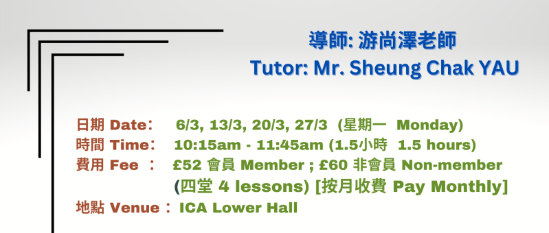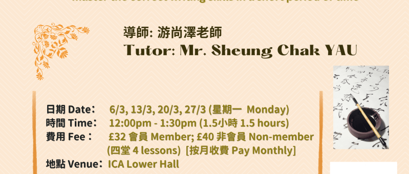 書法研習班 Chinese Calligraphy – Intermediate Class (March 2023)