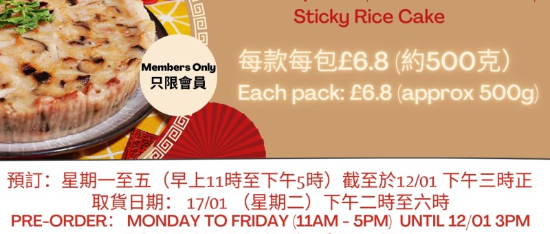 依士靈頓華人協會 (ICA) 會員可於 09/01(星期一) 起至12/01 (星期四下午3時前) 預訂新春年糕(蘿蔔糕/年糕/ 芋頭糕), 年糕由羿彤食品公司提供. 預訂可致電020 72635986 或Whatsapp 07724828778. 歡迎銀行轉帳或取貨時付款,取貨日期17/01 (星期二), 下午二時至六時. Islington Chinese Association (ICA) Members can pre-order Chinese New Year Cake (Fresh Turnip Cake/ Fresh Yam Cake /Sticky Rice Cake) from 09/01 (Monday) until 12/01 (Thursday before 3pm). Cakes are supplied by YiTong Foods. Pre Order Via WhatsApp 07724828778…