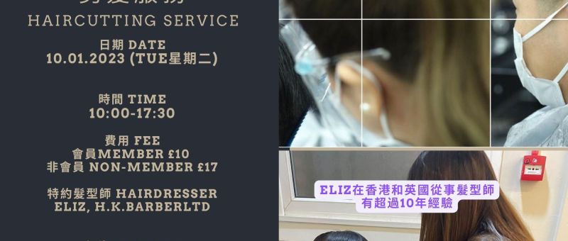 想在新的一年換個新髮型嗎? 來自香港的髮型師 Eliz 於1月10日(星期二)在中心為會員剪髮,Eliz在香港和英國從事髮型師工作十多年。當天剪髮服務由早上10時至下午5時30分,名額各15個,會員£10,非會員£17。 請致電020 7263 5986 或Whatsapp 07724828778 預約 ,先到先得,額滿為止。 Wanna a new hairstyle in the new year? ICA is providing hair-cutting service on 10 January (Tue) from 10:00 to 17:30 by the experienced hair stylist, Eliz. She has over 10 years’ experience of hairstyling in Hong Kong and the UK. Only 15 quotas…