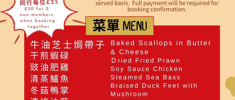 一年一度的冬至快到了, 係時候大家在12月15日(星期四) 在ICA一起歡聚慶祝! 除了潘大廚為大家準備多款佳餚外, 當日還包括唱歌,舞蹈表演,遊戲及抽獎. 當日下午憑餐票還可免費唱K+玩乒乓波! 日期: 2022年12月15日(星期四) 時間: 中午12:00恭候 12:45入席 菜單 牛油芝士焗帶子 干煎蝦碌 豉油肥雞 清蒸鱸魚 冬菇鴨掌 清綠油蔬 甜品及時令水果 8人一圍, 先到先得, 繳費作實, 額滿即止。 餐券: 會員 £22 / 非會員 £30 (非會員2人 同行每位£25) 歡迎以Whatsapp:07724 828778/ 親身/ 網上 bit.ly/3g4cI21 報名! Winter Solstice is approaching and it's time to gather together at ICA for celebration on Thursday 15 December.…