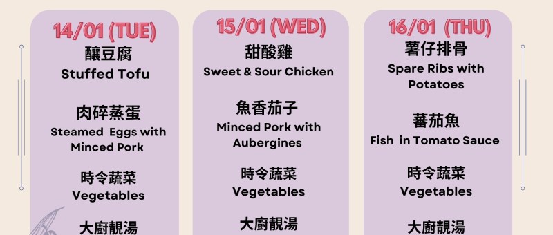 Lunch Menu 午餐菜單 (14/01/2025 – 16/01/2025)