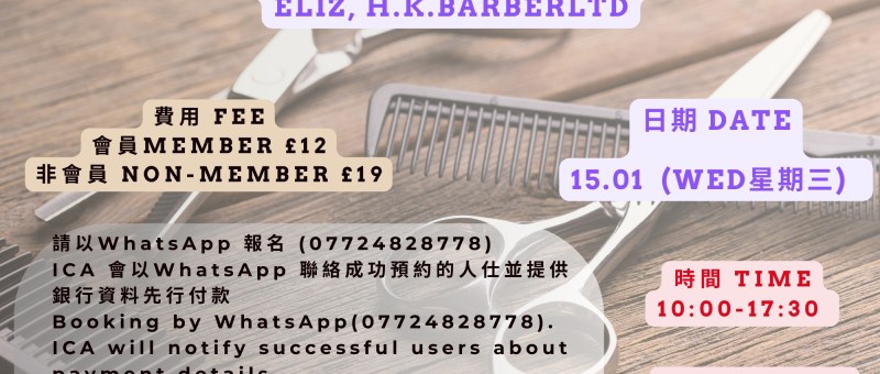 1月份ICA 將會於1月15日 安排一次剪髮服務 , 由Eliz主理。剪髮服務由早上10時至下午5時30分 。如有興趣請以 WhatsApp (07724 828778) 報名, ICA 會以 WhatsApp 跟成功預約的人士進行確認並提供銀行資料先行付款(會員£12,非會員£19)。 ICA will arrange Haircutting service on 15 January (Wed) by Eliz. Haircutting service is from 10:00 to 17:30 . Please book by WhatsApp (07724828778) , ICA will confirm successful users by WhatsApp and provide payment details (£12 for members and £19…