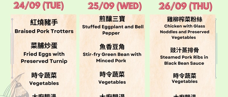 Lunch Menu 午餐菜單 (24/09/2024 – 26/09/2024)