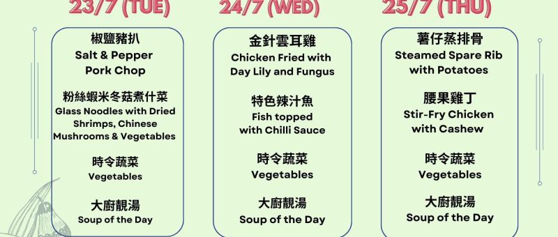 Lunch Menu 午餐菜單 (23/07/2024 – 25/07/2024)